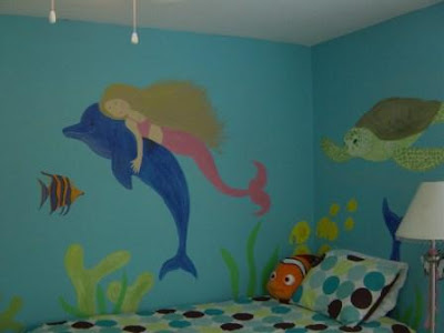The theme is an ocean and this particular blank space is a room at a chiropractic office designated specifically for children. There are certain “must haves” requested by the client: dolphin, sea turtle and mermaid, but everything else has been left up to me. (These are my favorite kind of clients, by the way.)