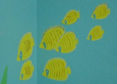 I’ve only just begun this mural. Many elements and layers still need to be added before it looks anything resembling an underwater seascape. But I know what I’m doing. I’ve done it before.